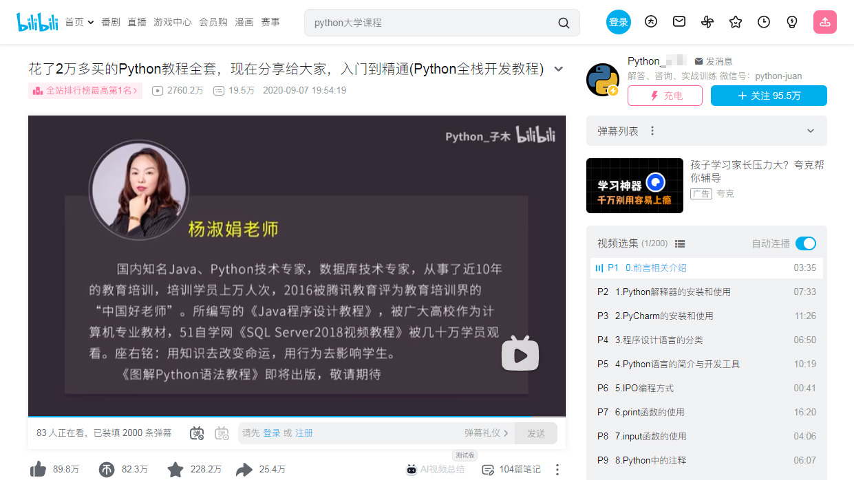 真的十分精彩,作为计算机专业学生,我只会C++、java和HTML,本来已经不想了解其他语言了,听了杨老师的课,燃起了探索Python的欲望。