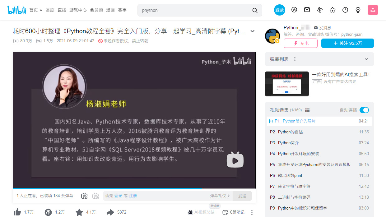 很喜欢这位老师的风格,课堂效果杠杠的,特别是类与对象明白了,讲的特别是好,我是一个基础不是很多的同学,所以选择了这个视频入门,效果出奇的好,感谢杨老师。谢谢同学把这个视频分享给我,强烈推荐!强烈推荐基础不好的人看!